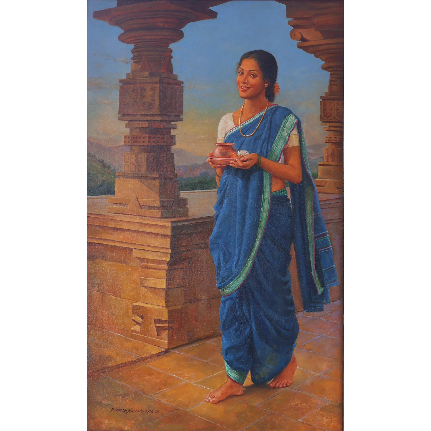 About the Artwork – This realistic oil-on-canvas portrait displays the artist’s expertise and experience in bringing art to life – whether it is through perspective, proportions, composition, ease with the medium or the precise use of light and shadows.