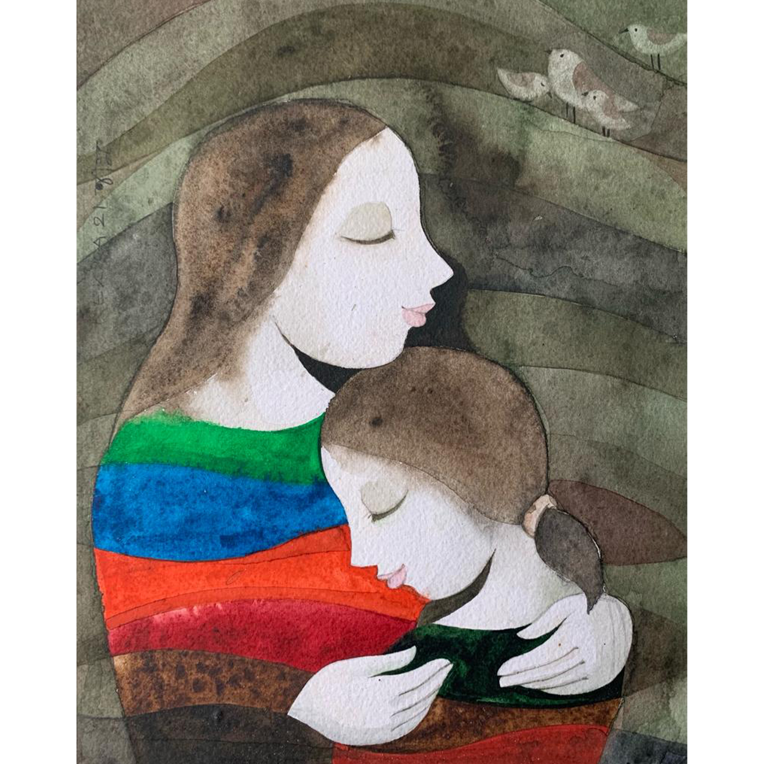 About the Artwork -Security and love in Ma’s nest gives you the courage to fly and explore – is the theme of this contemporary watercolor on paper.