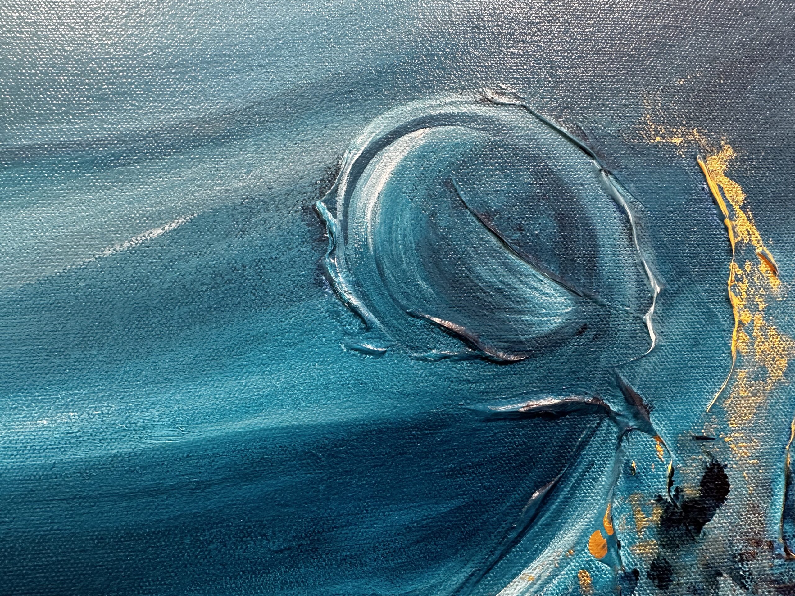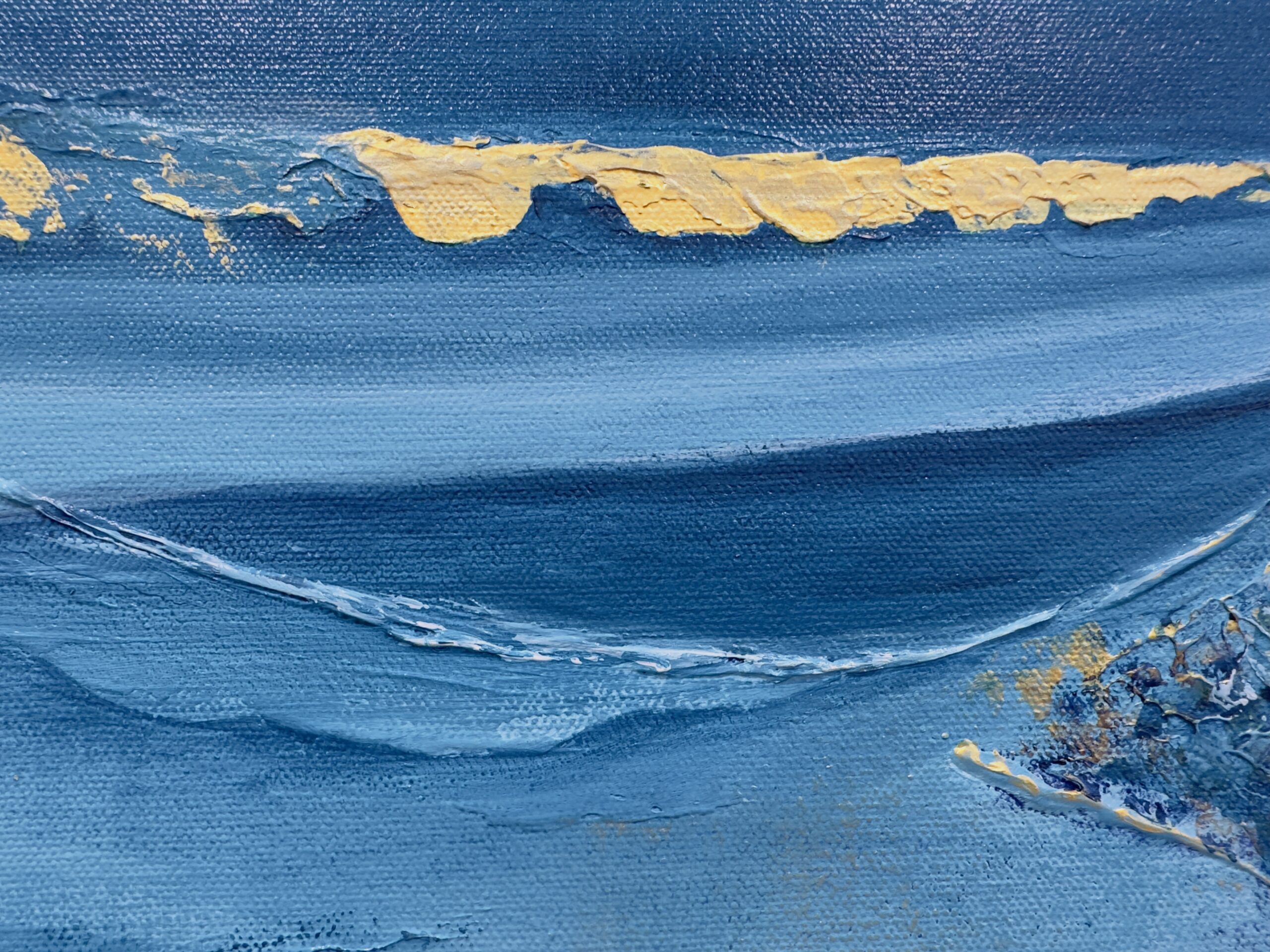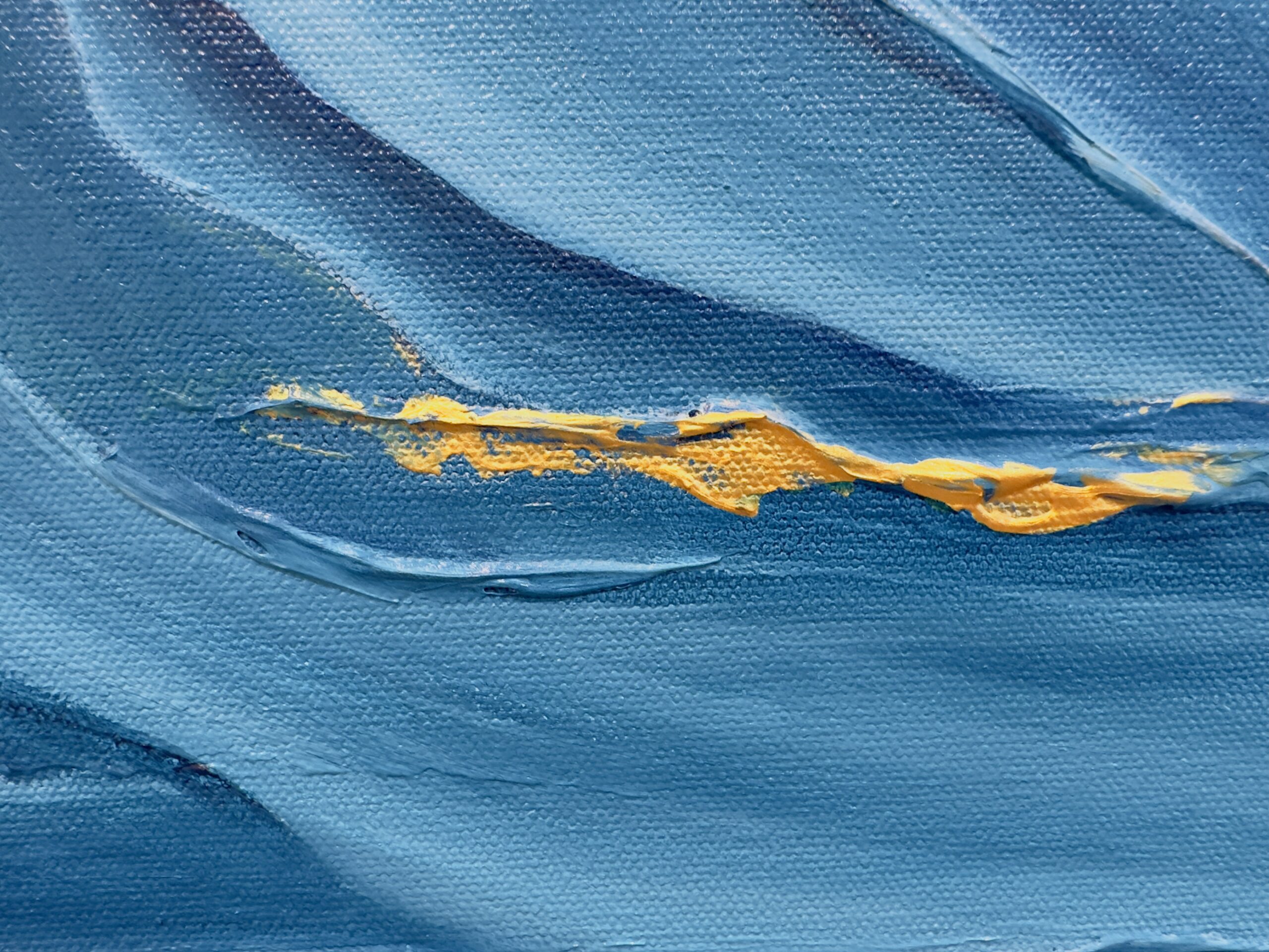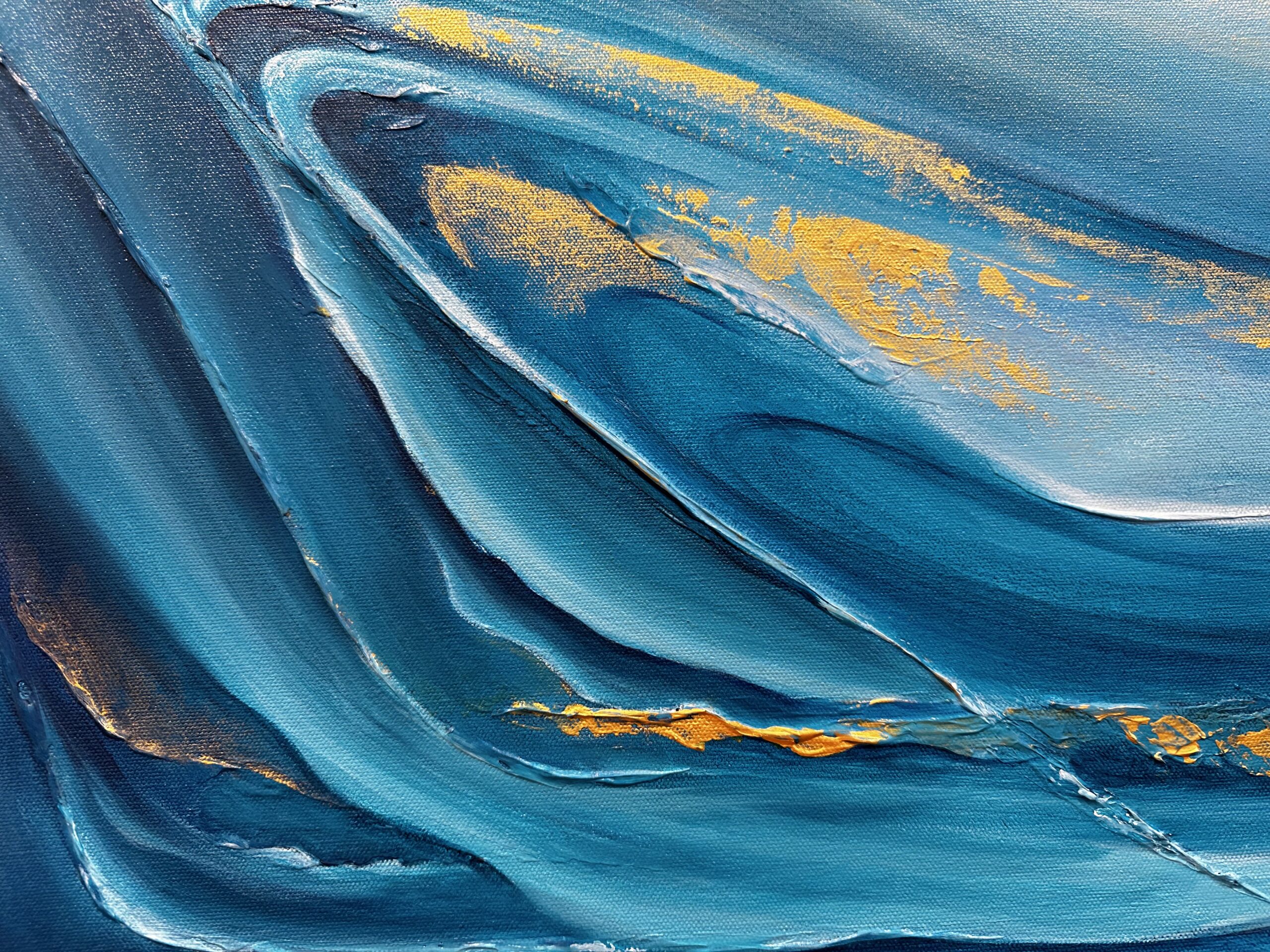 About the Artwork – A contemporary depiction of the convergence of sky and sea, that meet along the golden horizon.