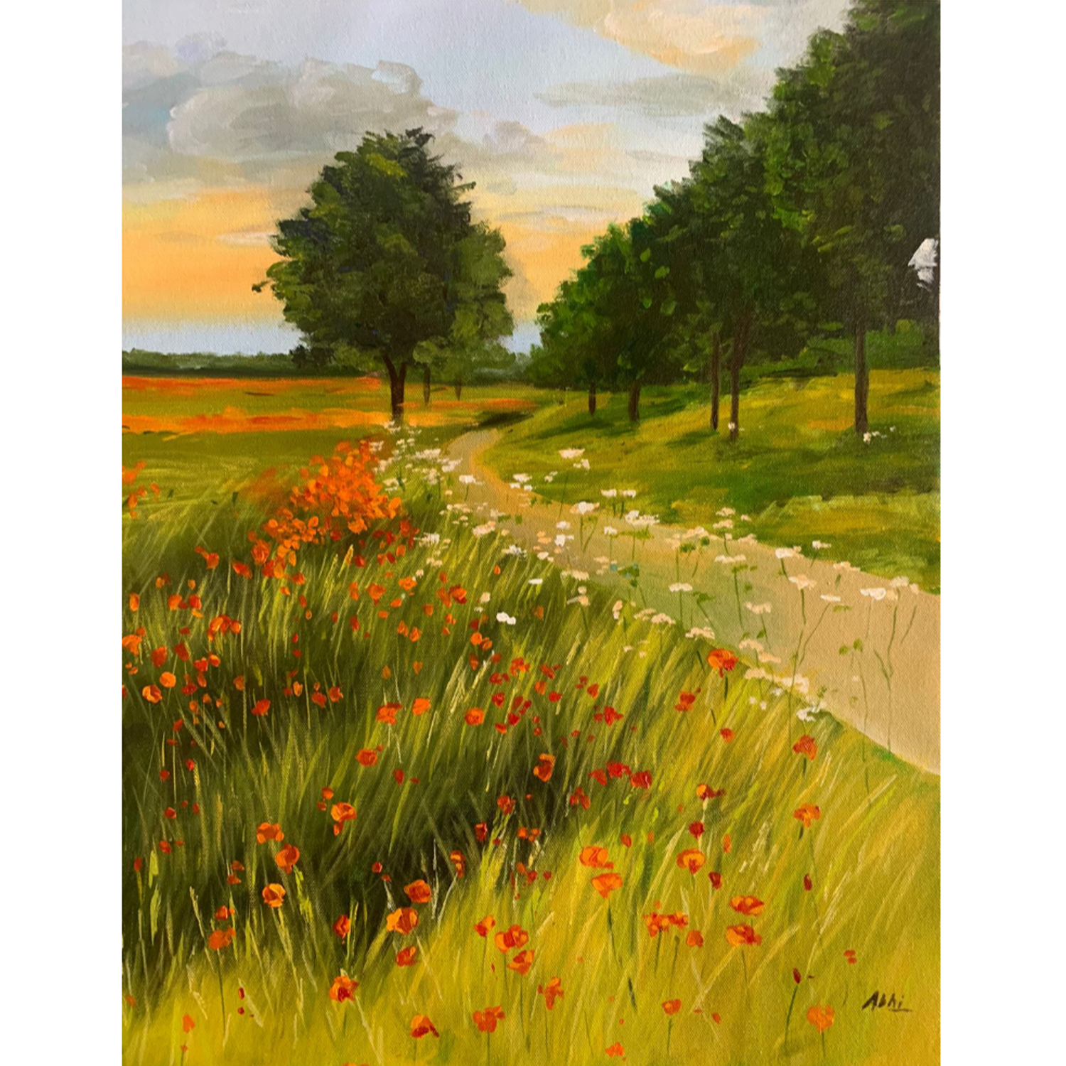 About the Artwork -This realistic landscape invites the viewer into a picture-perfect evening, to enjoy the serenity of a field of wildflowers bursting with colour.