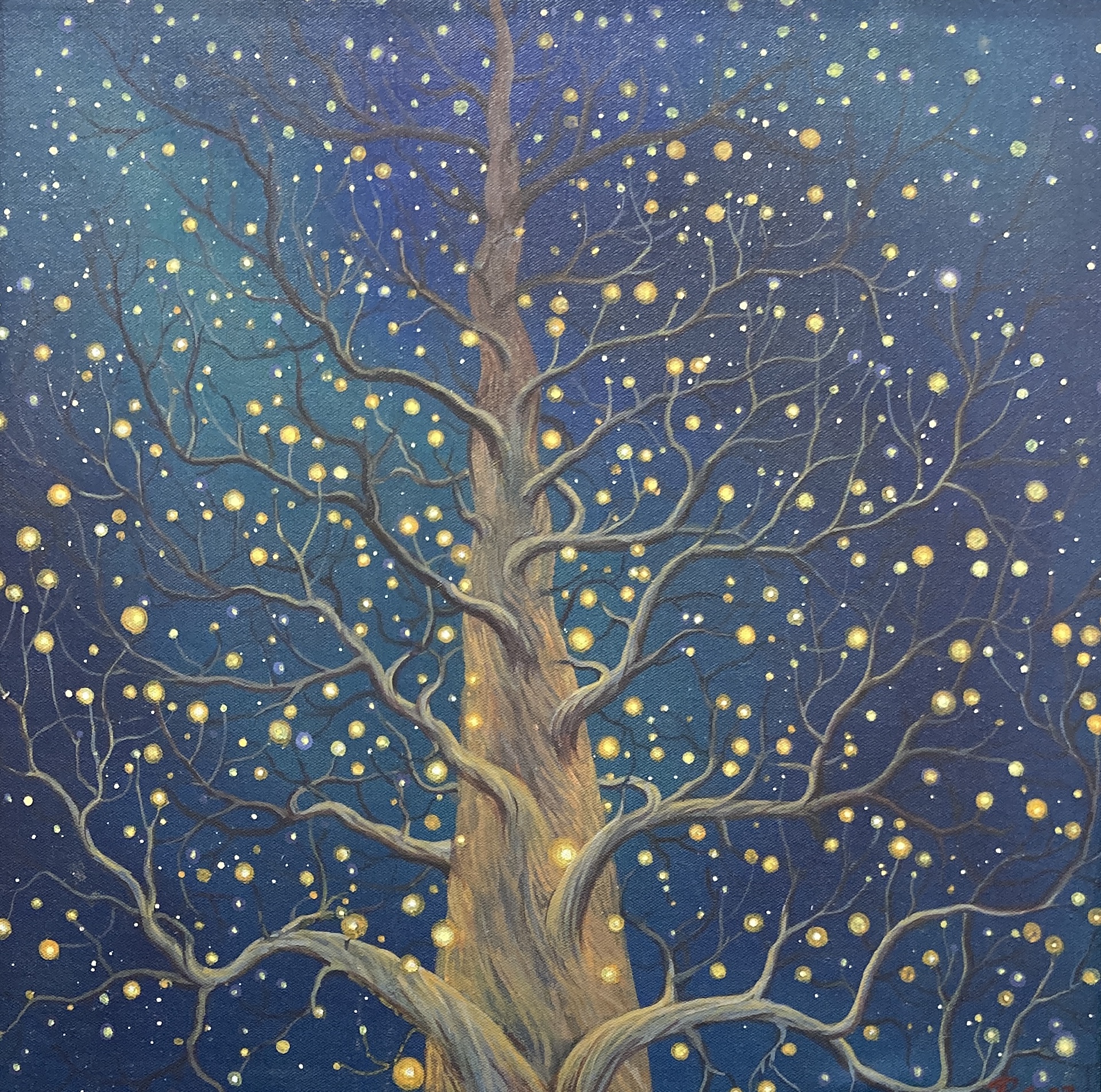 About the Artwork -This fantasy artwork is a combination of imagination and direct observation of reality. It takes reality and adds a fanciful, mystical feeling to it, resulting in a glittering landscape.