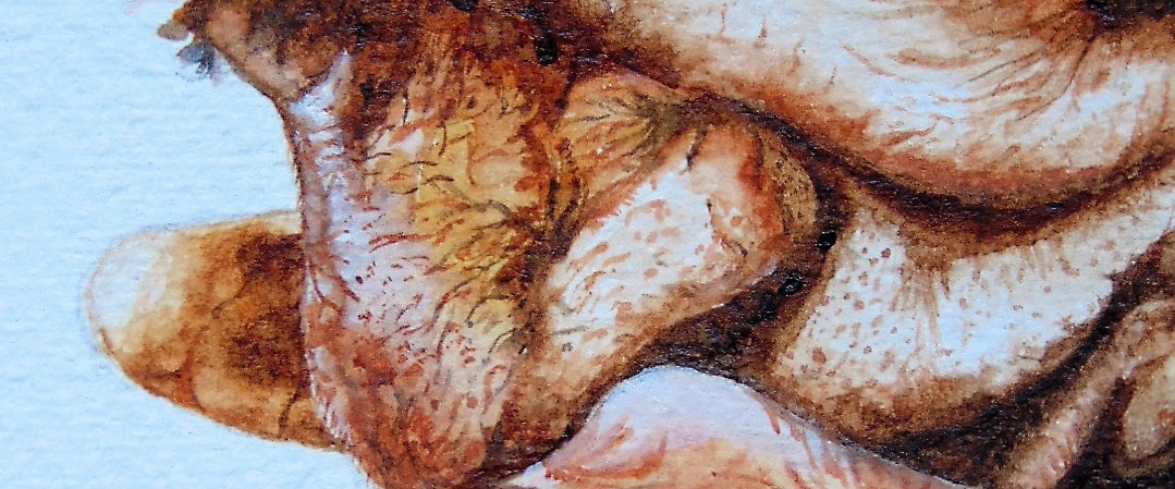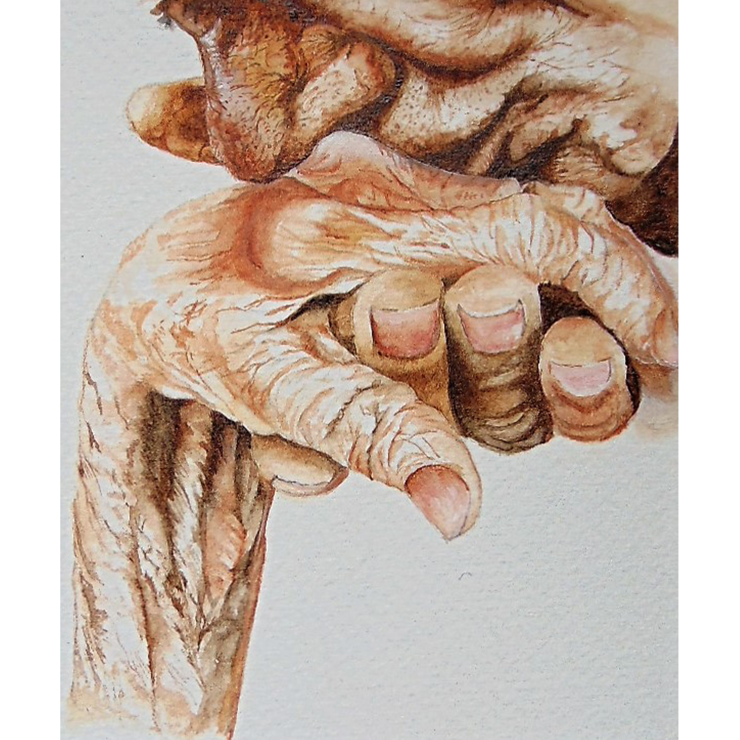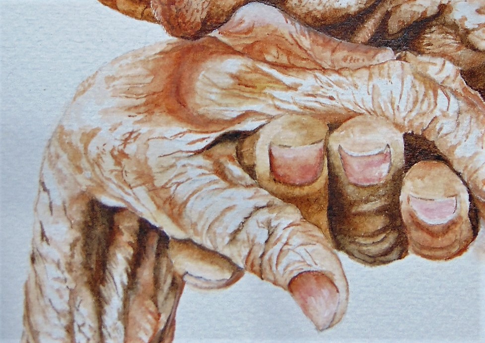 About the Artwork – This realistic acrylic portrays the passage of time and a life well lived, surrounded by the support of loved ones.